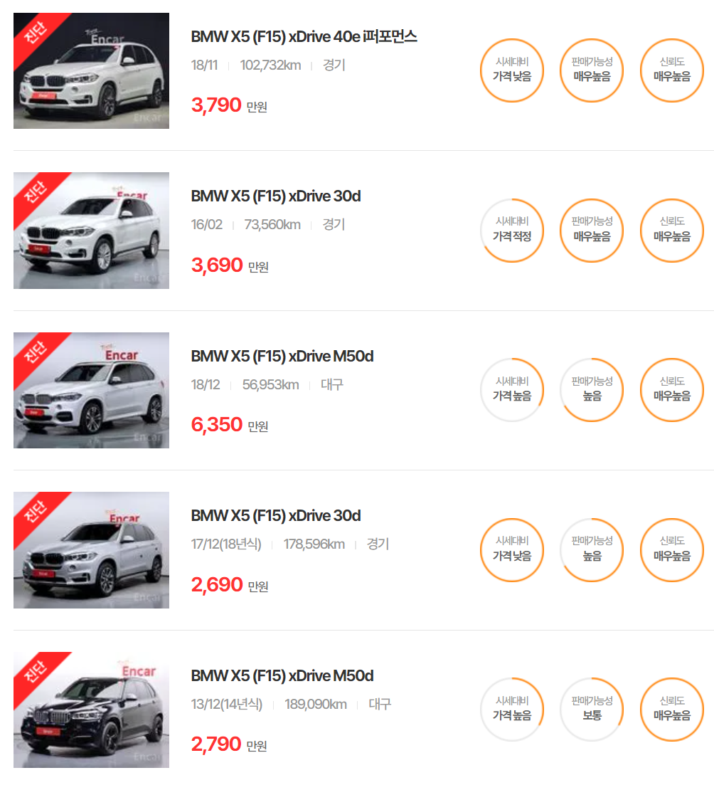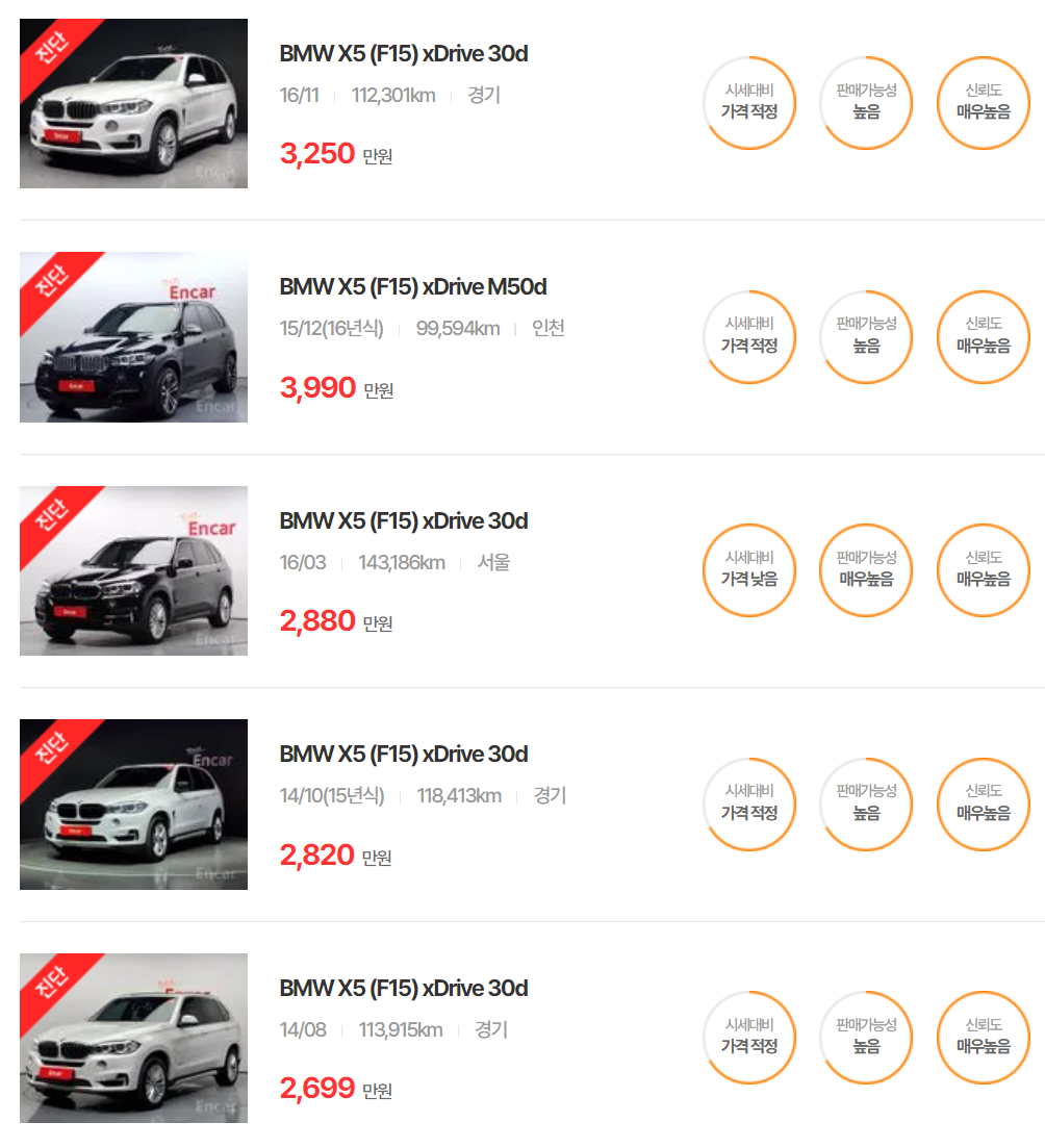 | BMW X3 중고차 가격 시세표 | 25년 6월 기준 (0) | 2025.06.03 |