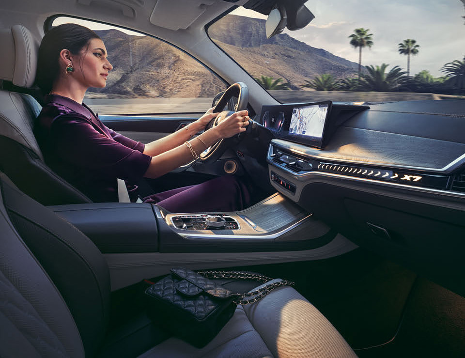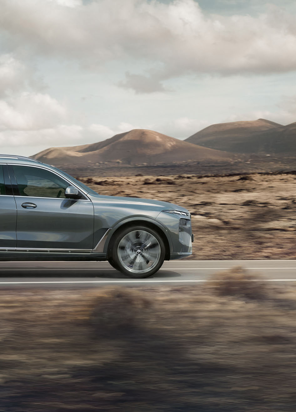 2025 BMW X7은 대형 슈퍼 SUV의 전형적인 우아함을 갖추고 있습니다. 라디에이터 그릴이 강조된 전면부와 세련된 LED 헤드라이트가 조화를 이루며, 이는 강력한 시각적 인상을 남깁니다.
