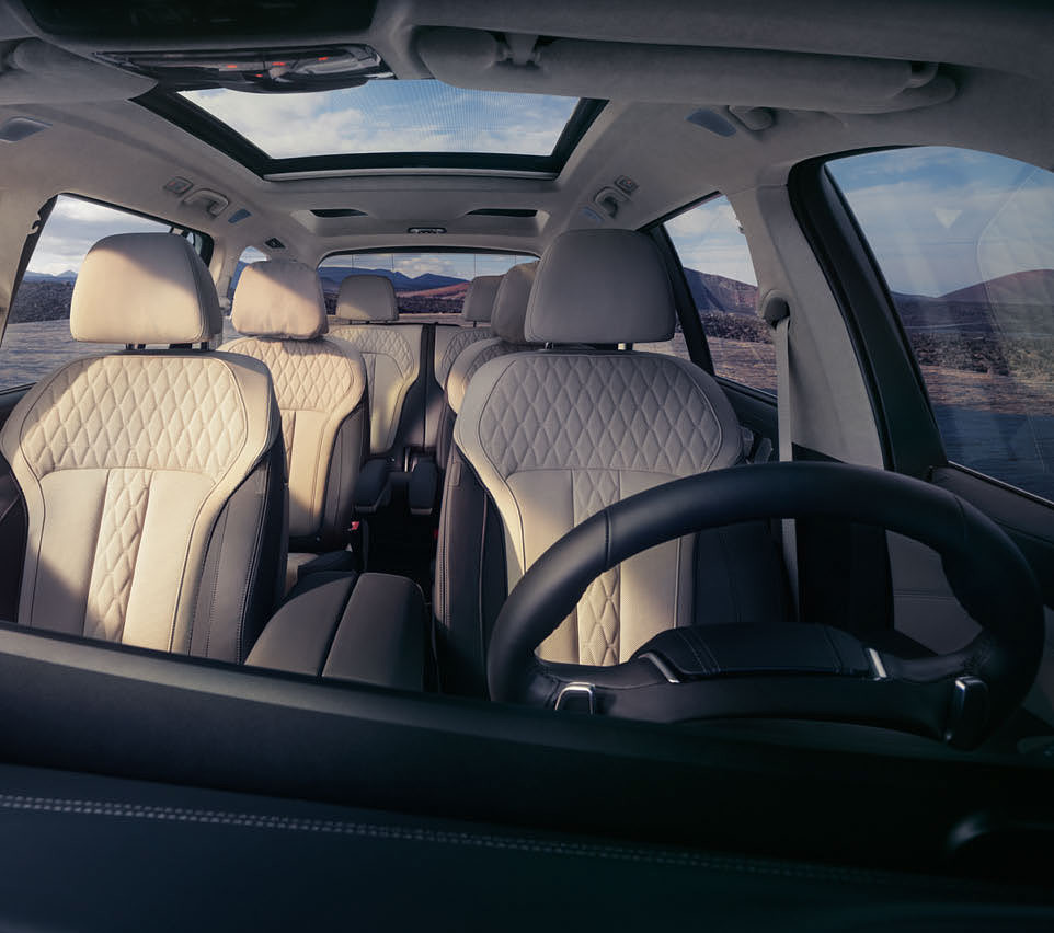 3열 시트까지 제공되는 탁 트인 공간과 더불어, 온도 조절을 위한 4존 자동 에어컨 시스템이 장착되어 있어 쾌적한 주행을 선사합니다.