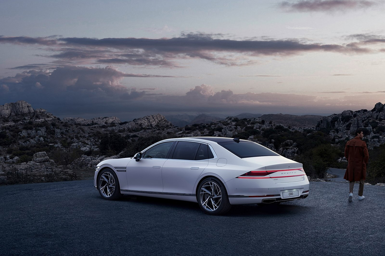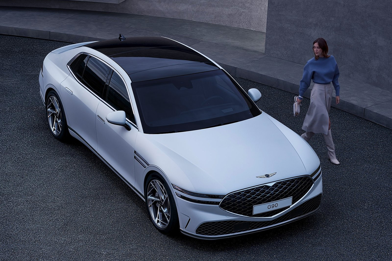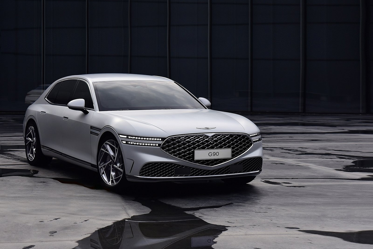 제네시스 G90은 고급스러운 프론트 그릴과 세련된 차체 라인을 갖추고 있어 도로 위의 시선을 끌기에 충분합니다.