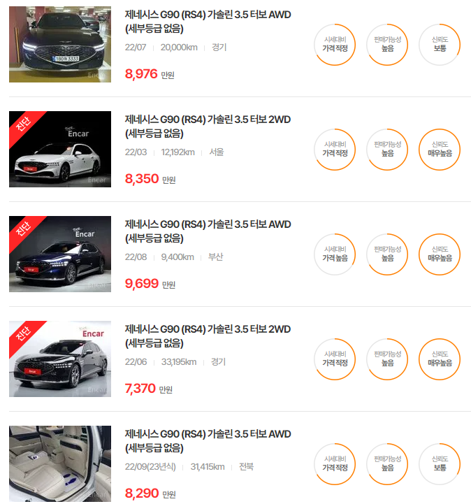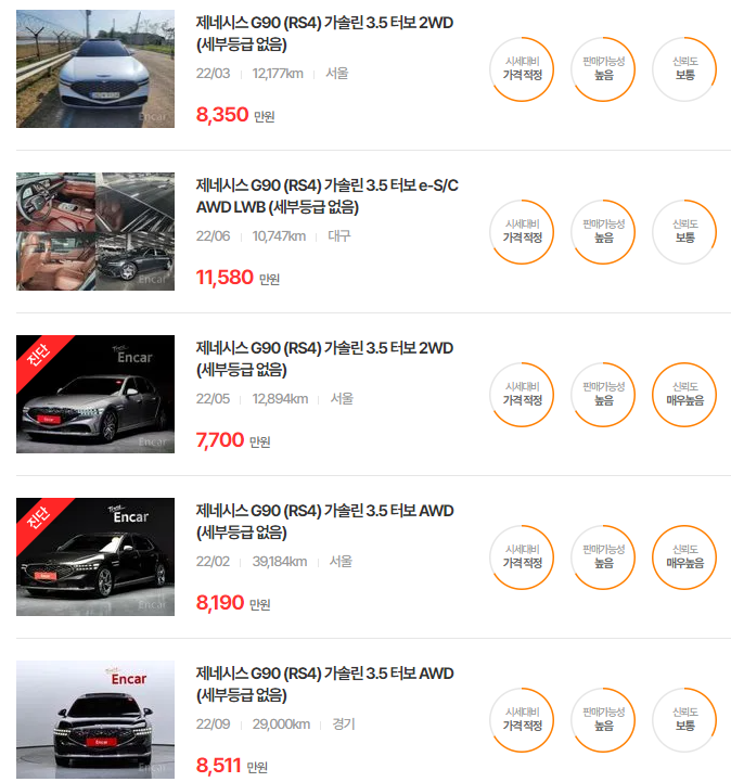 - 주행거리와 차량 상태에 따라 가격폭이 넓습니다.