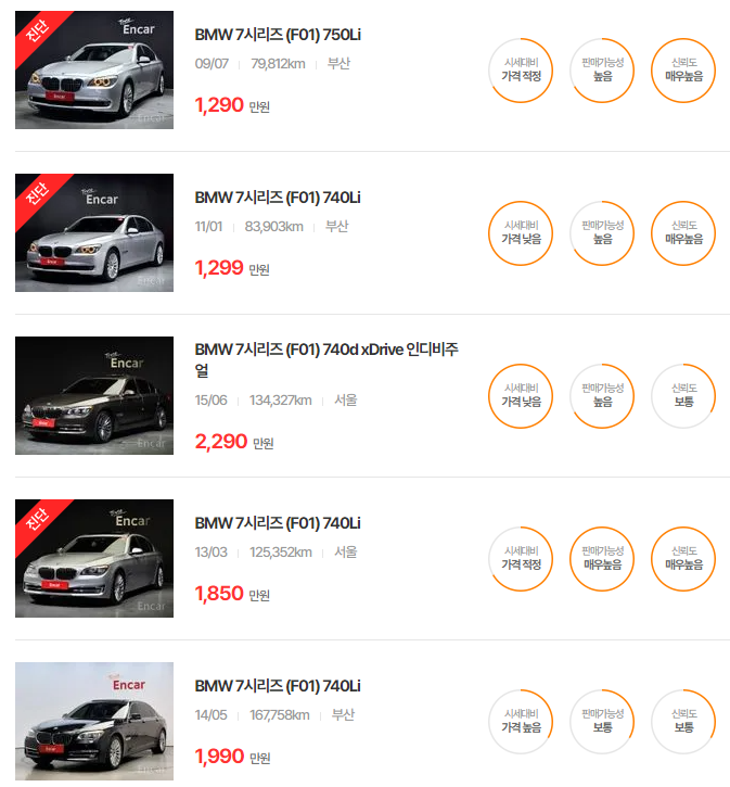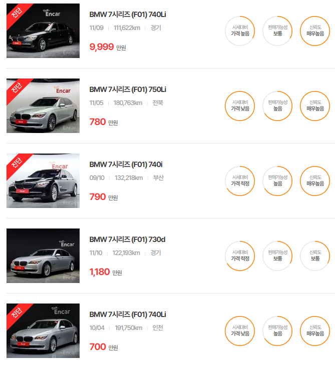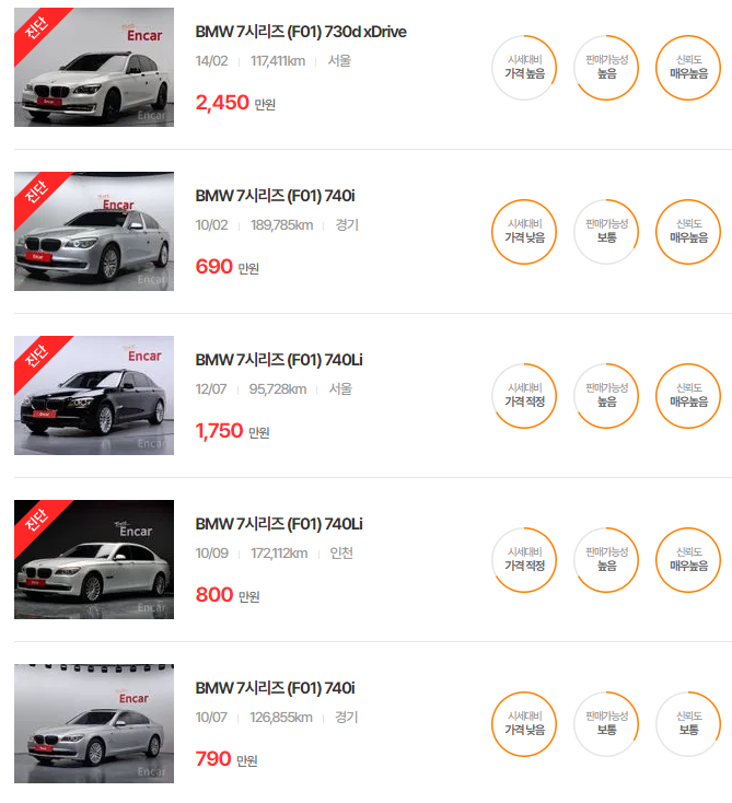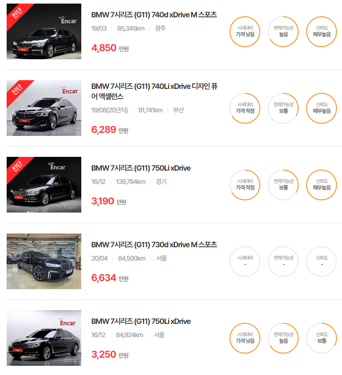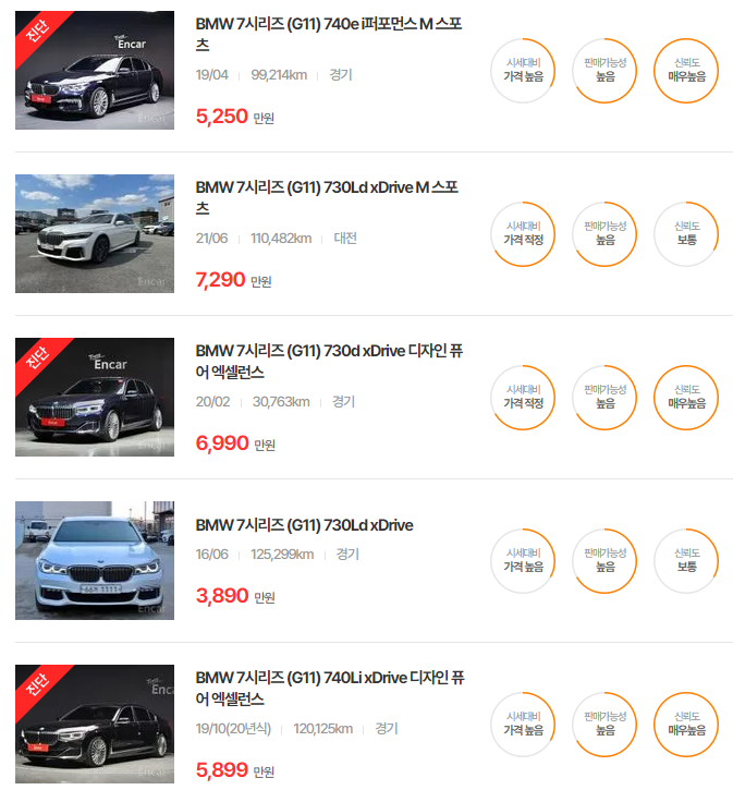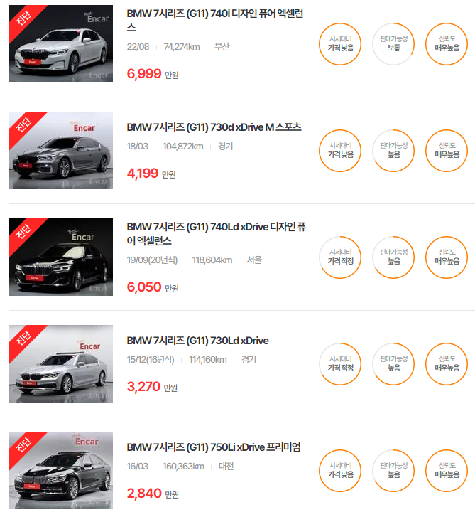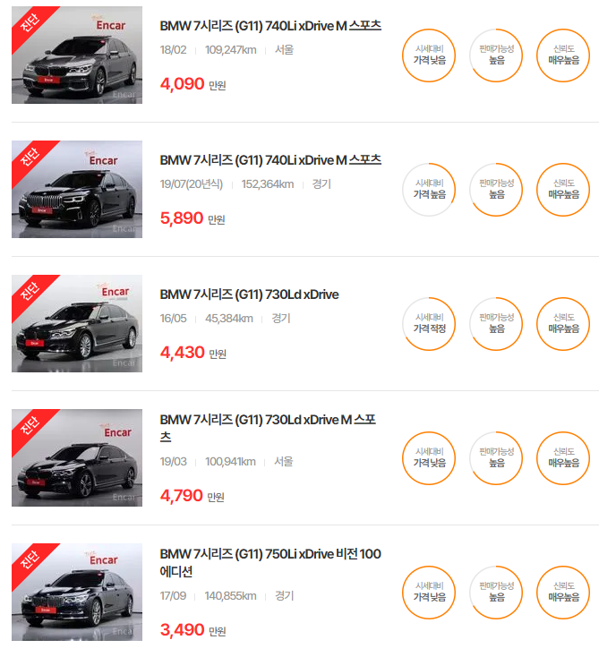 BMW 7시리즈 중고차 가격