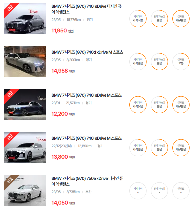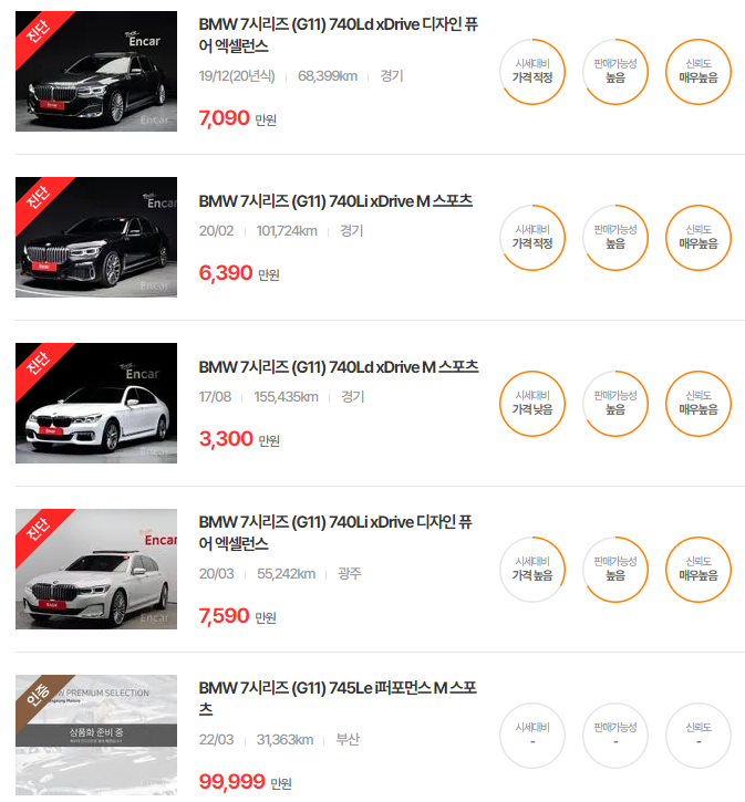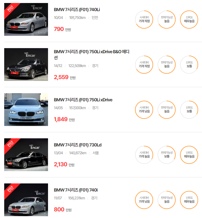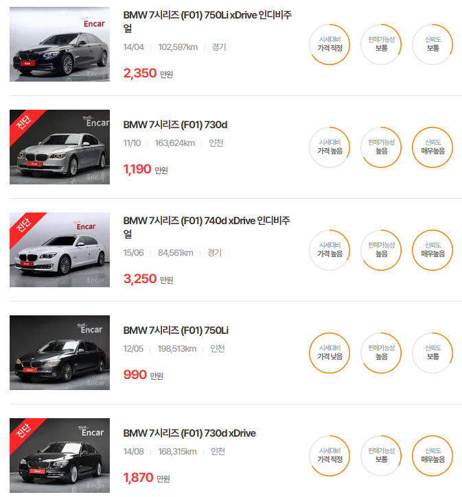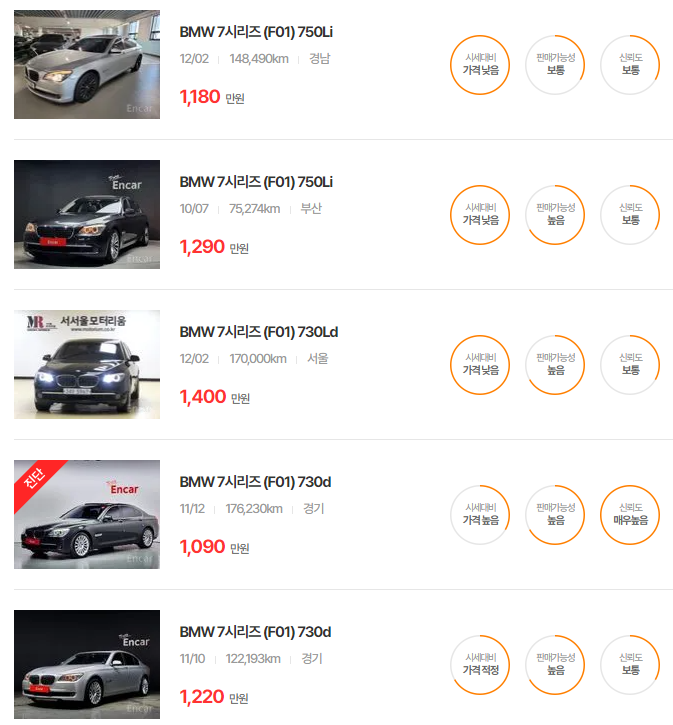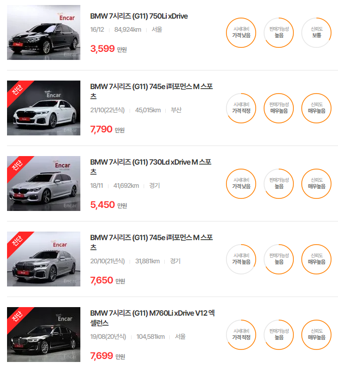 BMW 7시리즈 중고차 가격