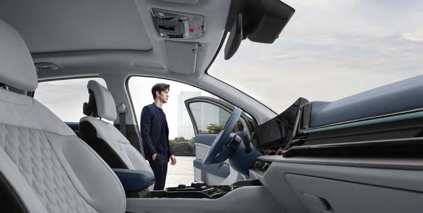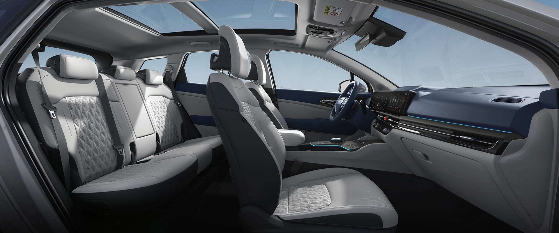 실내는 넓고 편안하게 설계되었으며, 모든 좌석에 고급 소재가 사용되어 안락함을 더합니다.