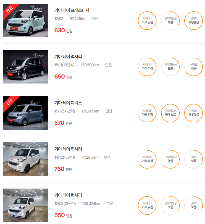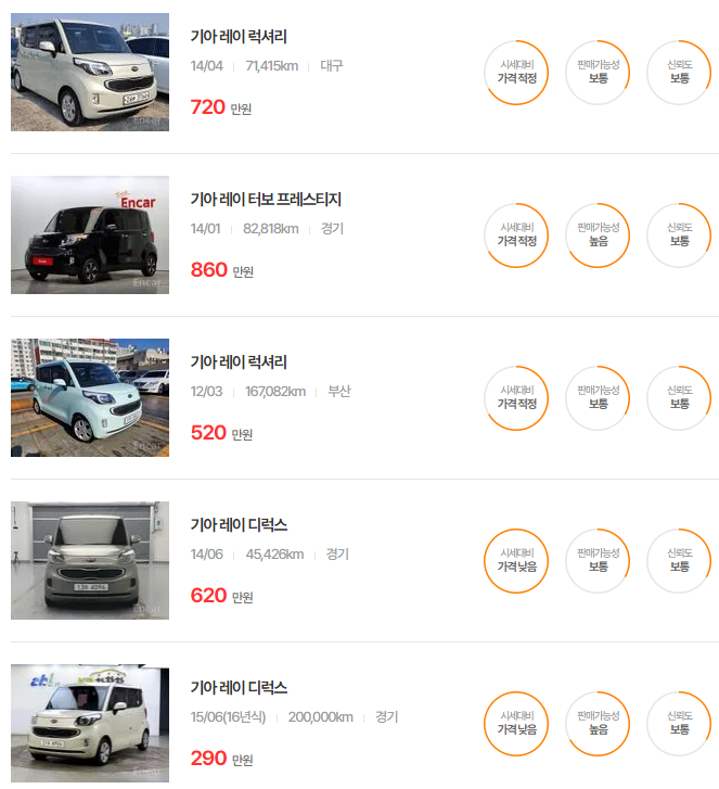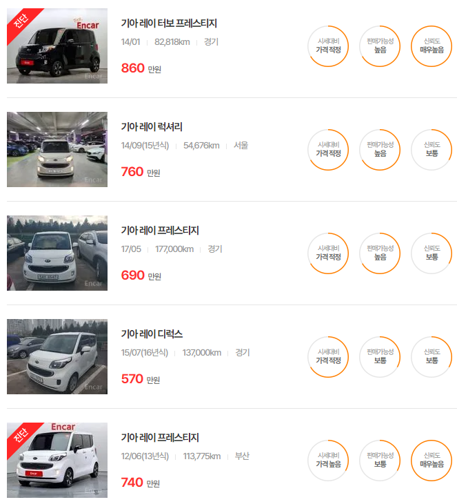 기아 레이 중고차 가격 시세표