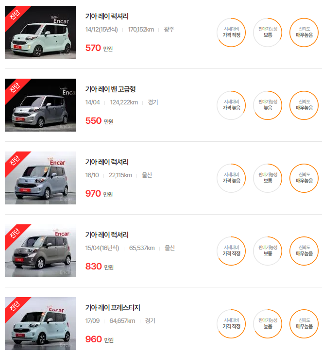 | 레이 전기차 중고차 가격 시세표 | 25년 6월 기준 (2) | 2025.06.10 |