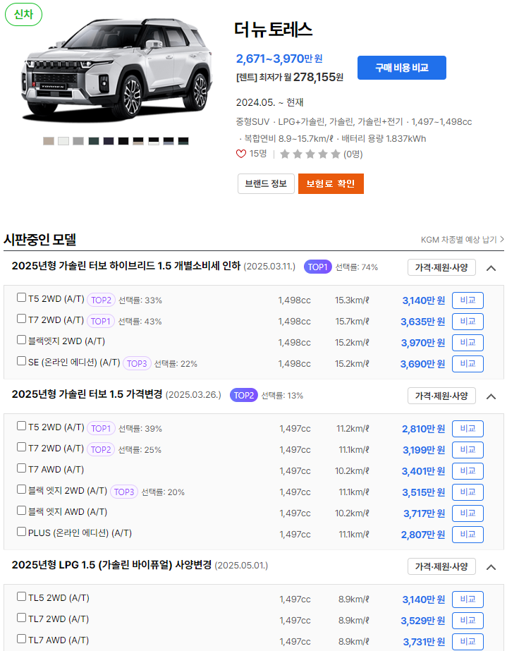 2025 토레스 하이브리드는 가격, 연비, 제원, 유지비 면에서 다양한 장점을 제공합니다. 해당 차량 구매에 고민 중이시라면 위 정보를 참고해보시길 바랍니다.