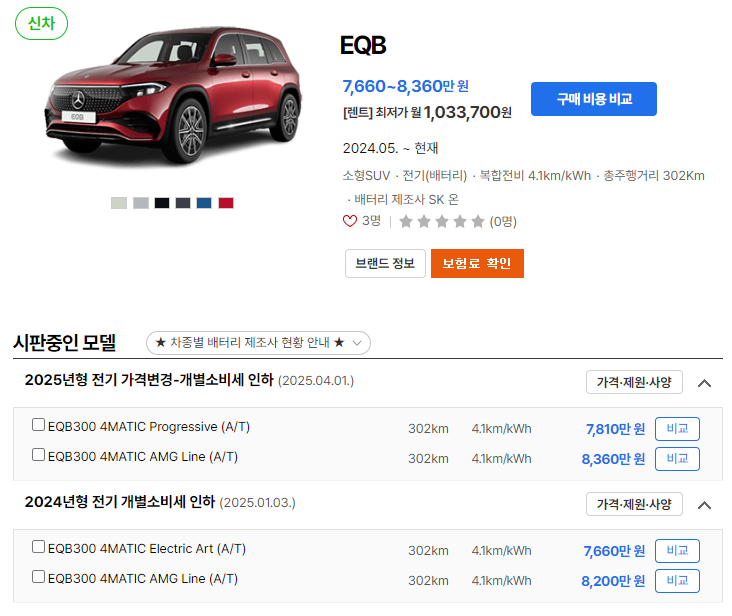 2025 벤츠 EQB 가격 제원 연비 | eqb 300 4matic